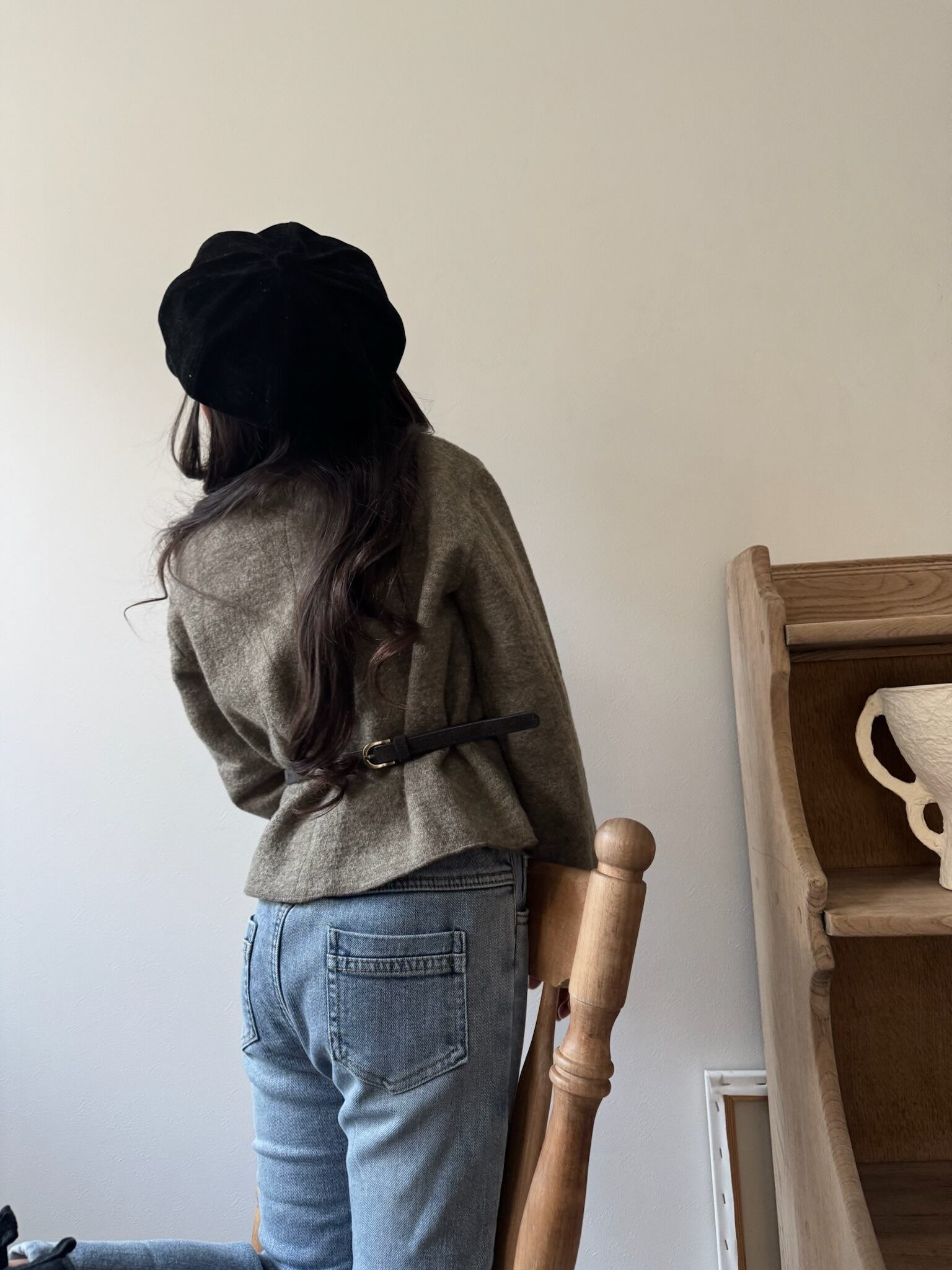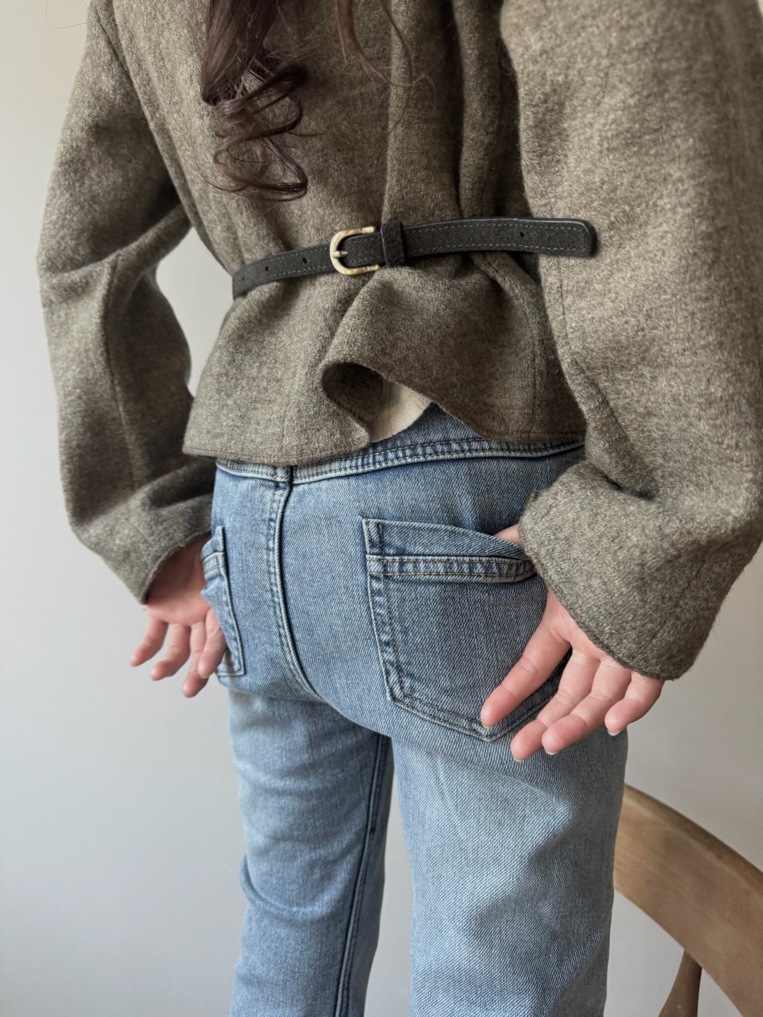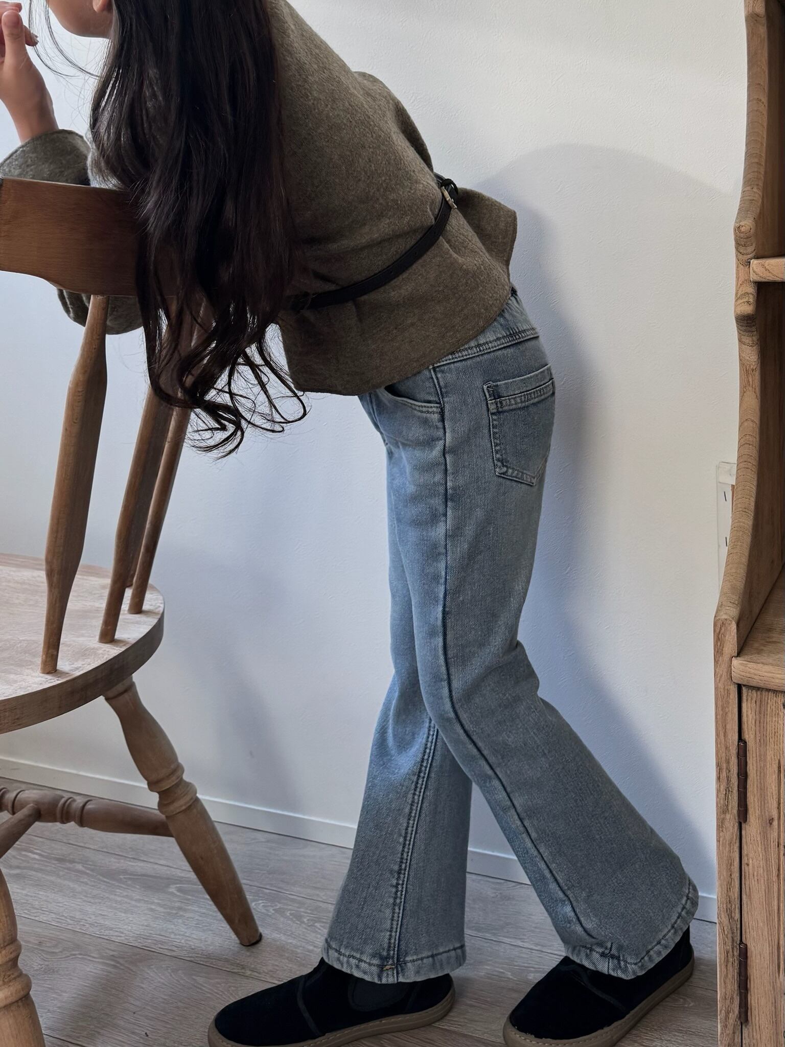 形の綺麗な起毛タイプのデニムパンツは